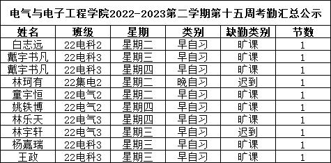 表1 2023.5.29-2023.6.4学校学风检查情况