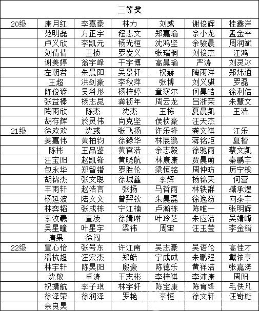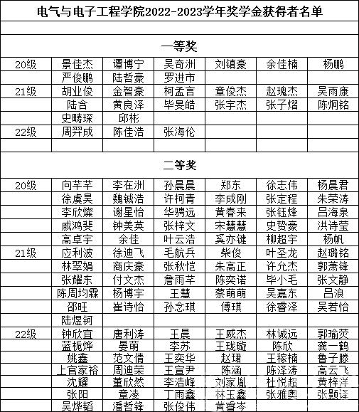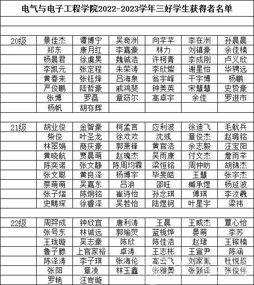根据《温州大学奖学金实施办法》、《温州大学学生综合素质考评实施办法》、《温州大学三好学生评选办法》进行2020级、2021级、2022级学生2022-2023学年奖学金以及三好学生评选。经学生申请确认、球探足球 评选,共评选出景佳杰等297名同学获得综合奖学金,张淞等25人获得单项奖学金,景佳杰等136名同学获“三好学生”称号。现将名单予以公示,请班级以及个人认真核对。