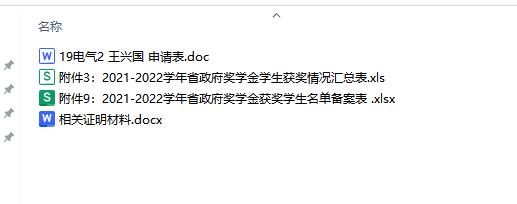 可推荐、直接当选(2个表+证明材料):电子材料 附件8:2022-2023学年省政府奖学金申请表.doc (重命名 班级+申请表)+附件9:2022-2023学年省政府奖学金获奖学生名单备案表.xlsx+附件8填写奖项、论文、课题、专利等的证明材料(注意,论文需要已经发表,录用不算;科研课题需提供结项证书)