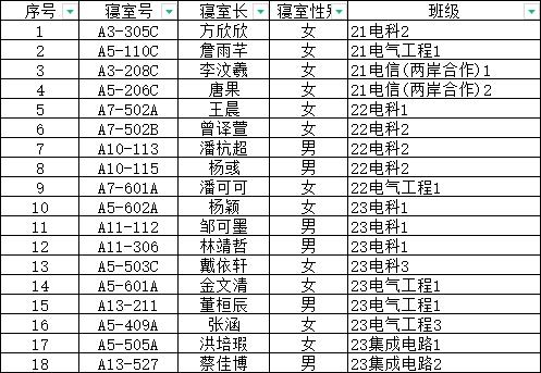 请上述18个寝室的寝室长进微信群,便于消息通知传达。