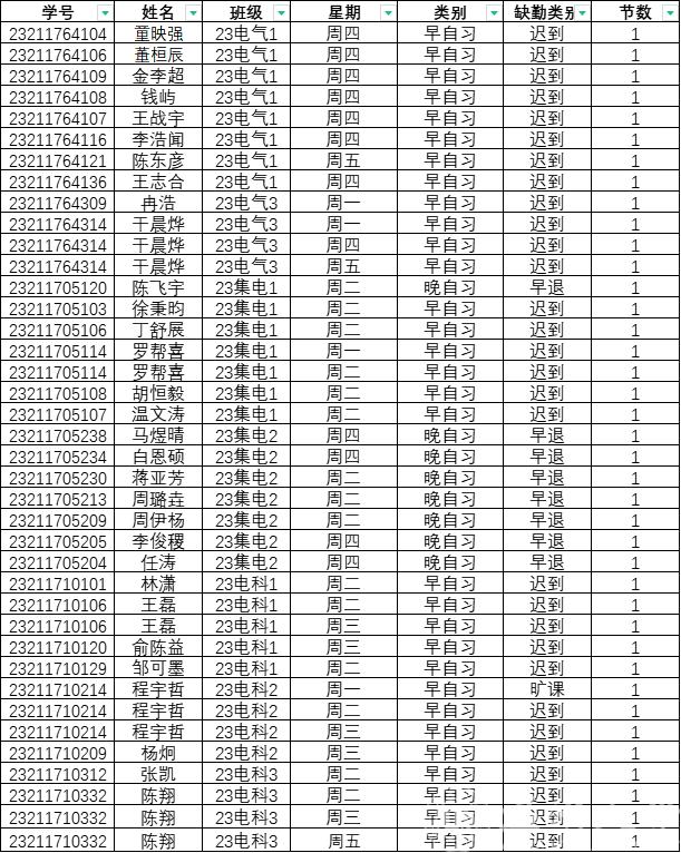 表1 2023.10.30-2023.11.5球探足球 学风检查情况