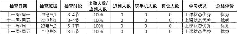 第十周及第十一周课堂及早晚自习缺勤情况如下: