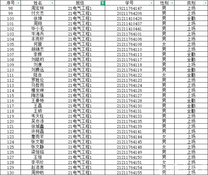 各班级: