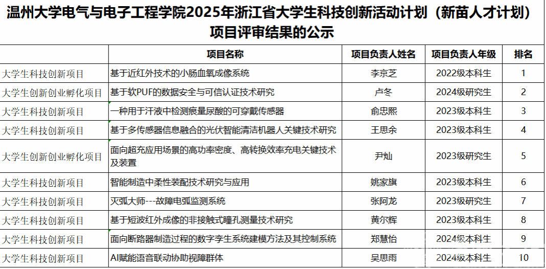根据《关于印发〈浙江省大学生科技创新活动计划(新苗人才计划)实施办法(试行)的通知》(团浙联〔2010〕13号)和校发《关于开展浙江省大学生科技创新活动计划(新苗人才计划)2025年度项目申报的通知》的要求,经个人申请、球探足球 评比,现对球探体育比分网 2025年浙江省大学生科技创新活动计划(新苗人才计划)项目评审结果予以公示。