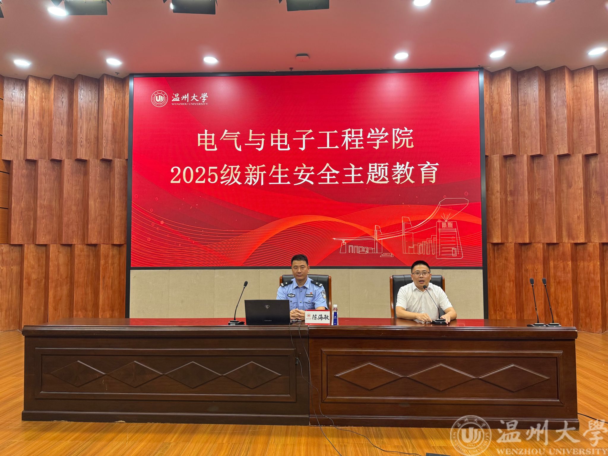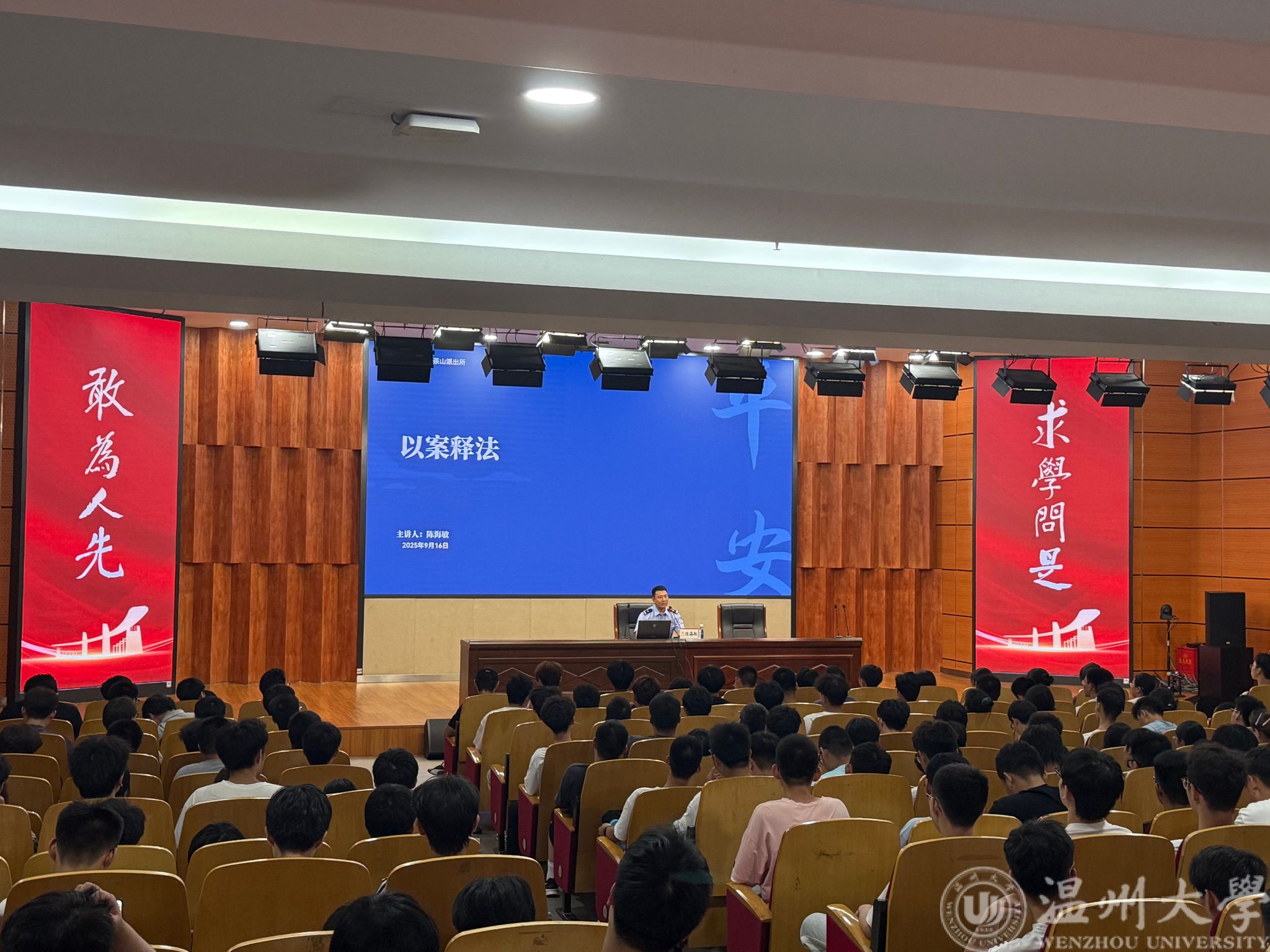 近日,球探体育比分网 于岩松堂雁山厅开展 2025 级本科新生安全教育讲座,特邀茶山街道派出所所长陈海敏担任主讲人,全体 2025 级本科新生到场聆听,为刚步入大学校园的新生们送上了一堂实用且深刻的 “安全第一课”。
