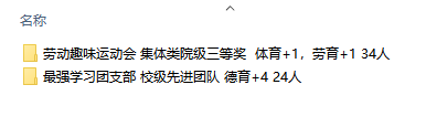 ①文件名为“奖项名称+级别”(如:劳动趣味运动会+参与分/一等奖),并附上奖状、公示等佐证材料(具体格式见下图)