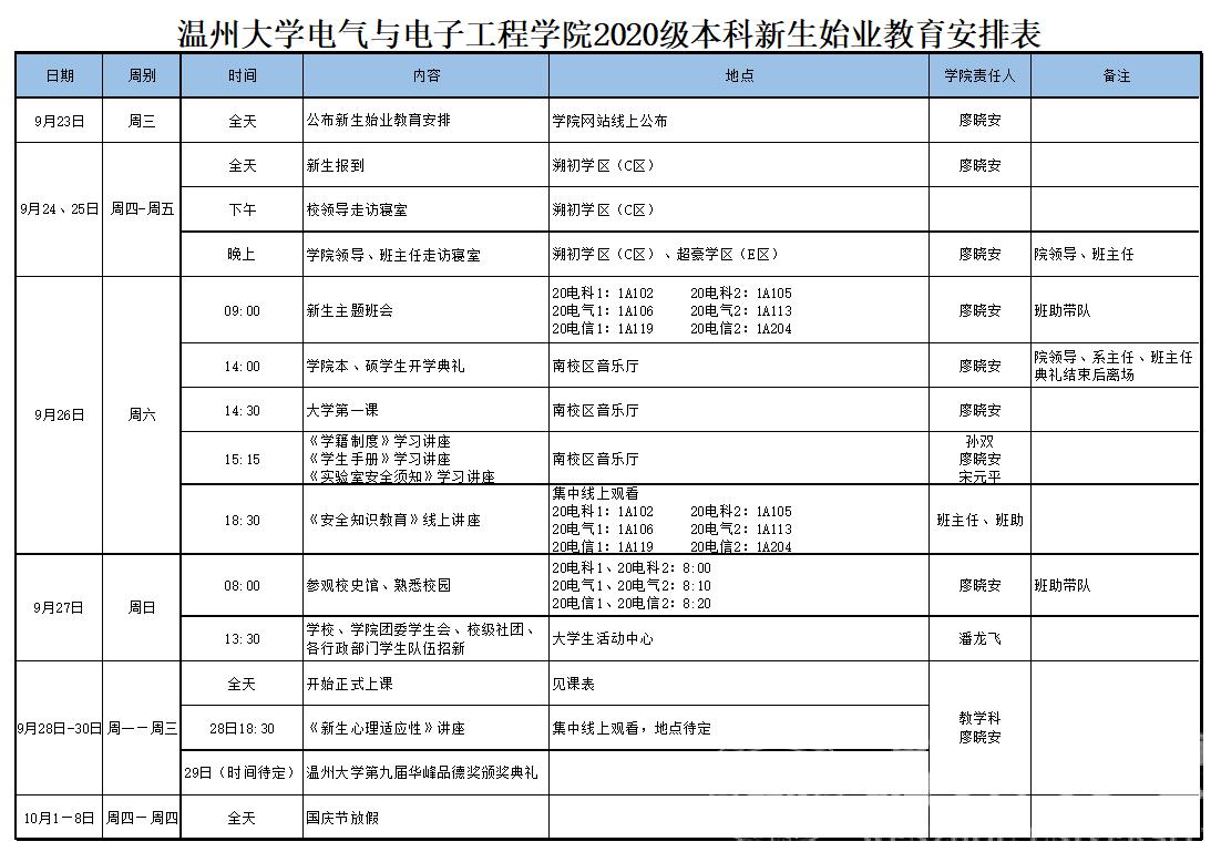 球探体育比分网 2020级本科新生始业教育安排表