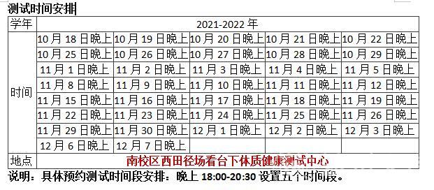 本学期开始学生体质健康测试中心移至南校区西田径场看台下,请大家测试时前往南校区体测中心!