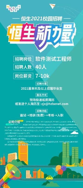 本周五(9月25号)下午3:00,恒生电子校园招聘宣讲会,地点:5号楼A101教室举行,现场面试、互动交流。