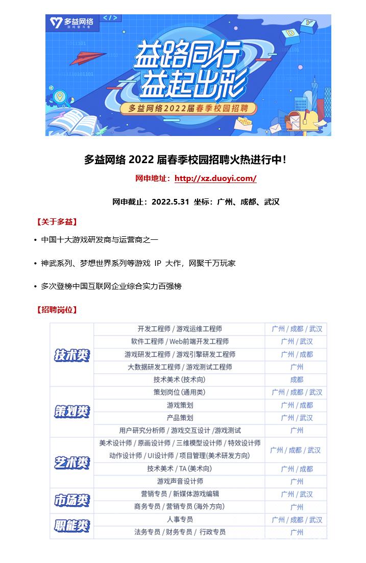 多益网络22届春招正式批火热开启!