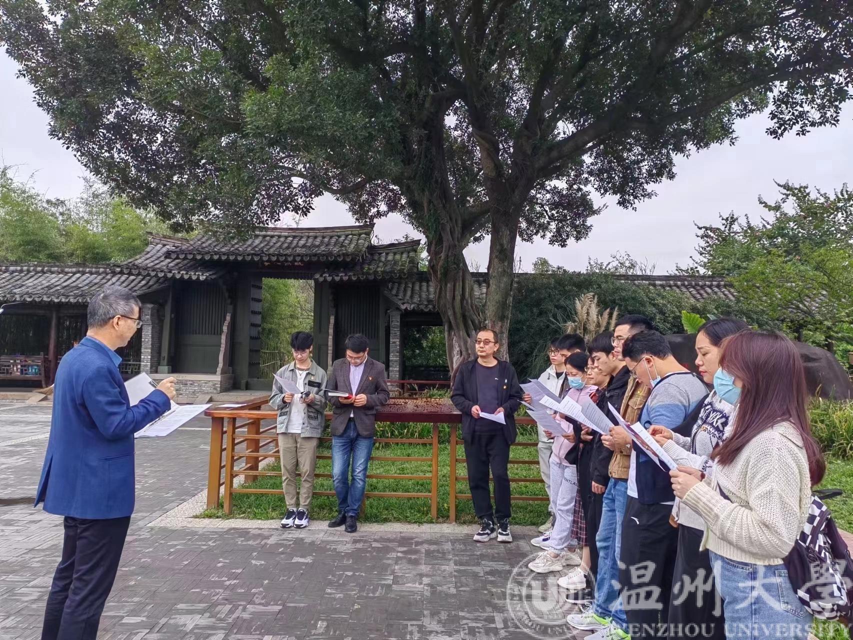 “党的二十大是全党全国各族人民迈上全面建设社会主义现代化国家新征程、向第二个百年奋斗目标进军的关键时刻召开的一次十分重要的大会……”11月24日,球探体育比分网 行政教工党支部全体党员前往三垟湿地开展主题党日活动,球探足球 党委书记李方强在温州市第十二批市级爱国主义教育基地——温州生态园三垟湿地的大榕树下开展了一堂别开生面的专题党课,20余名师生党员围在一起,重温习近平总书记在庆祝中国共产党成立100周年大会上的重要讲话精神。