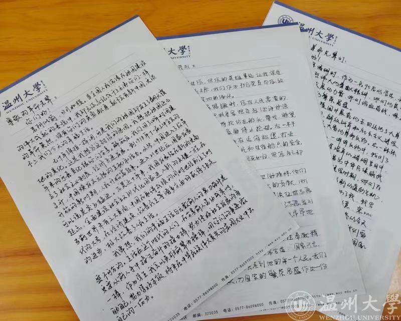 “作为一名95后的学生,我不会忘记革命先烈伟大的奉献精神,你们的英勇无畏,给予新中国发展的力量。我写这封信给您,感谢你们的英勇无畏为我们创造了明亮的今天。”有的党员在看到雁荡山烈士陵园中展览的五四运动、抗日战争、解放战争时期的史料和事迹,以及大量的革命文物后,被先辈们的革命事迹激励和感动,写信以表达缅怀之情和深深的敬意。