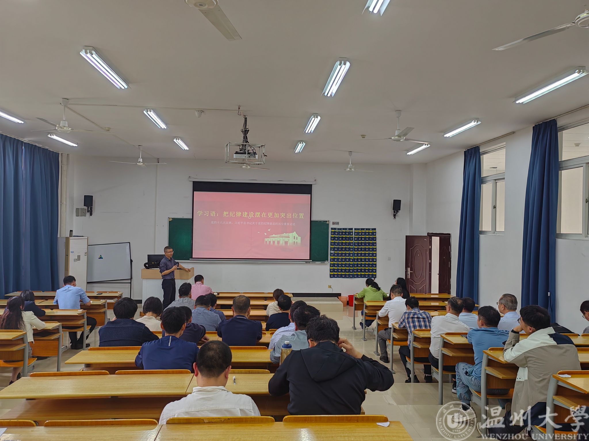 会议传达了党中央、省委、市委、校党委关于党纪学习教育的要求,并按照学校党纪学习教育工作方案的要求对球探足球 党纪学习教育做出部署。会议要求各师生支部要压实责任,率先垂范,对各项任务举措明确责任和具体要求,不折不扣抓好落实,周密安排部署,确保各项工作落实见效;全体师生党员特别是党员领导干部要原原本本学习《中国共产党纪律处分条例》(以下简称《条例》),逐章逐条精读细读,做到学纪、知纪、明纪、守纪,推动《条例》入脑入心,深化《条例》理解运用。