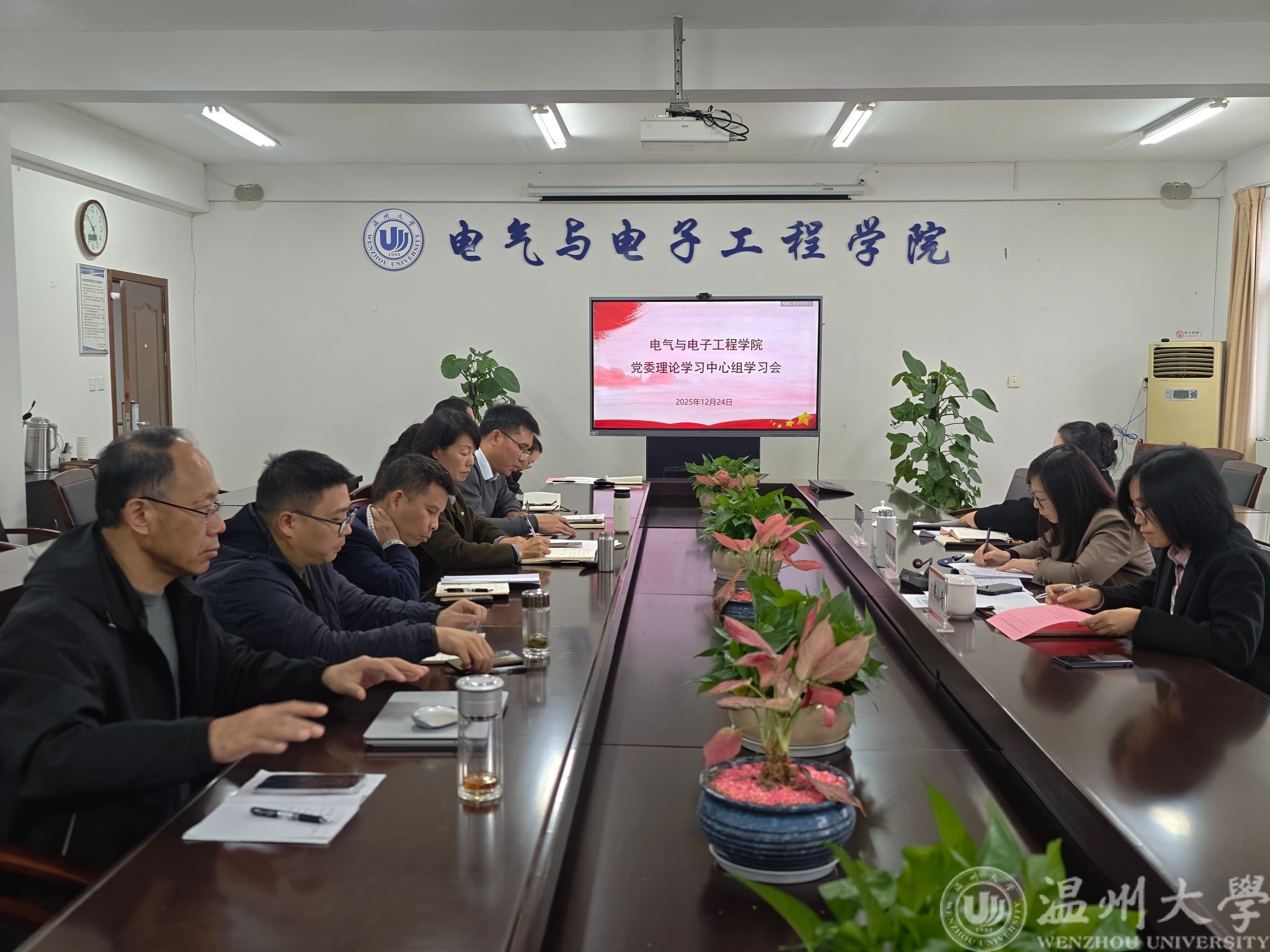 12月24日下午,球探体育比分网 党委理论学习中心组在1A-502会议室召开专题学习会,深入学习贯彻习近平法治思想。温州大学党委委员、宣传部部长、教师工作部部长吴静一行到会巡听旁听,球探足球 党政班子成员、党委委员、专职组织员参会。会议由球探足球 党委书记主持。