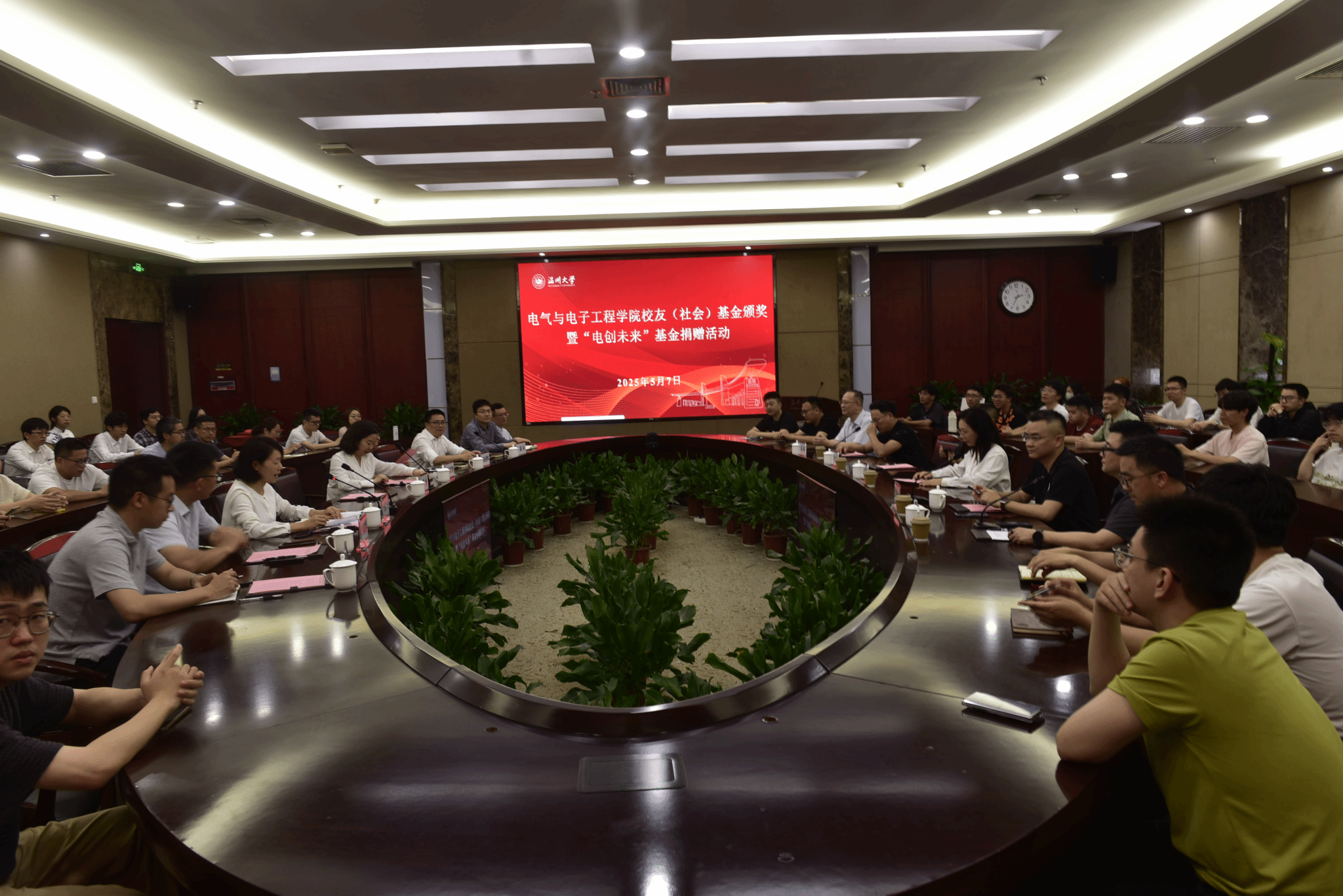 校庆日来临之际,5月7日下午,球探体育比分网 校友(社会)基金颁奖暨“电创未来校友基金”捐赠活动在岩松堂白鹿厅举行。校党委委员、宣传部部长、统战部部长吴静、相关职能部门负责人及球探体育比分网 超扬奖学金、金卡奖学金、一卡奖教金的捐赠方代表,“电创未来校友基金”捐赠方代表出席活动。