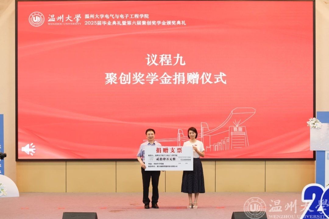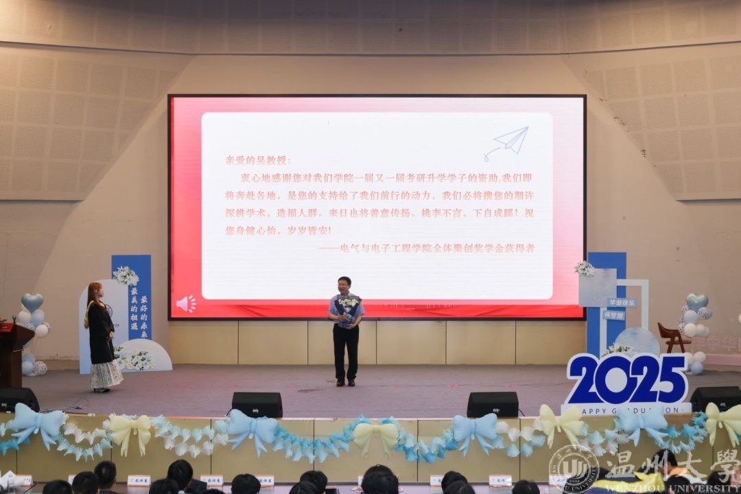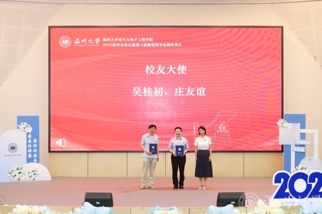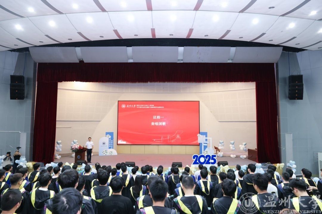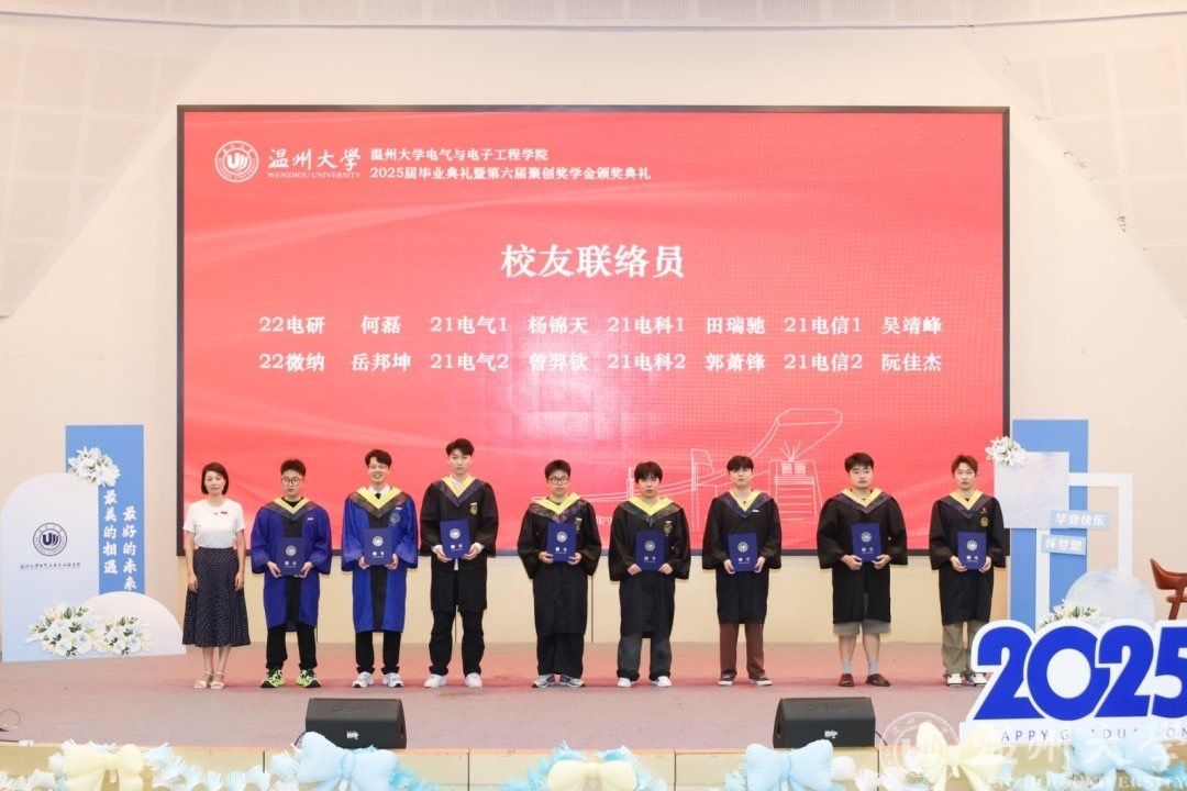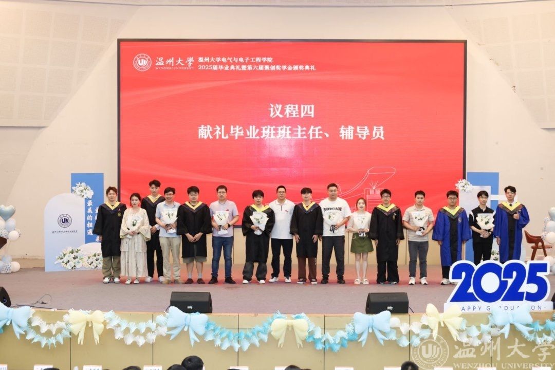六月的温州,栀子飘香,蝉鸣声声,毕业的离歌与未来的序曲在瓯江之畔交织回响。2025年6月21日下午14时,球探体育比分网 2025届毕业典礼暨第六届聚创奖学金颁奖仪式在南校区9号报告厅隆重举行。全体毕业生、特邀嘉宾吴桂初老师、球探足球 领导班子、系主任、专业负责人、全体辅导员和毕业班班主任等齐聚一堂,共同见证这场青春的告别礼与启航式。