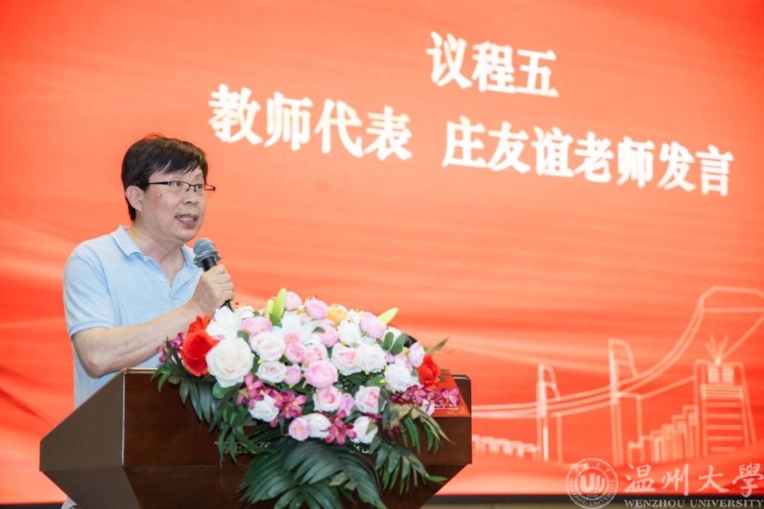 教师代表庄友谊老师和两位学生代表发言。庄老师勉励同学们保持学习的习惯,在没有参考答案的社会答卷上,继续拼搏,取得好成绩。